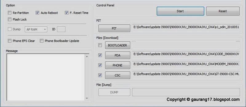 Download all those files From Samfirmware by typing the model name in the search box. If you are searching for Galaxy S I9000, type “I9000” in search box and select based on country/carrier to download. You can also download it from Samsung-Updates.